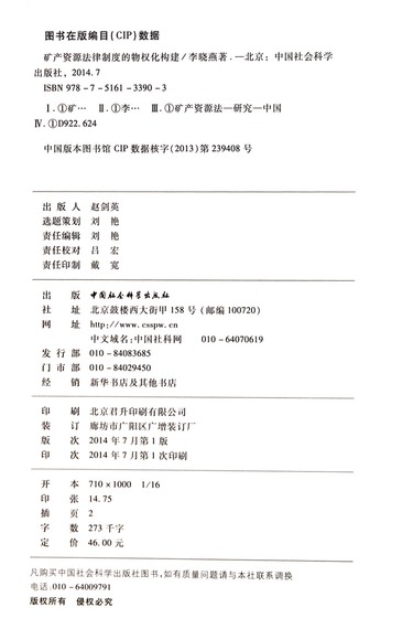 | 出版社 | 中国社会科学出版社 |