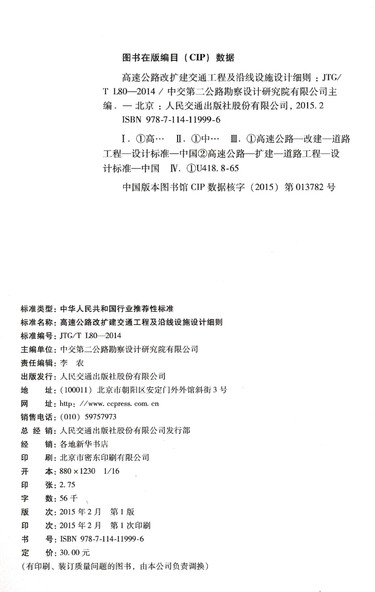 高速公路改扩建交通工程及沿线设施设计细则(JTG\TL80-2014)/中华人民共和国行业推荐性标准
