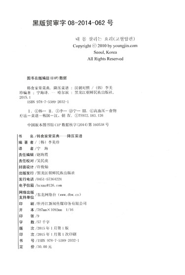 降压菜谱/韩食家常菜典