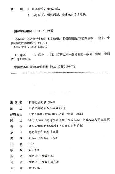 | 出版社 | 中国政法大学出版社 |
