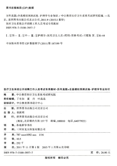 历年真题+全真模拟预测试卷(护理学专业知识适用于各省市区县医疗卫生事业单位医院三支一扶乡镇卫生院社区卫生服务站乡村医生等招聘考试2015最新版医疗卫生公开招聘工作人员考试专用教材)