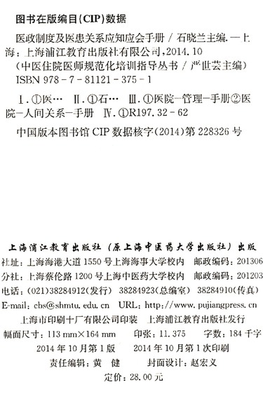 医政制度与医患沟通应知应会手册/中医住院医师规范化培训指导丛书