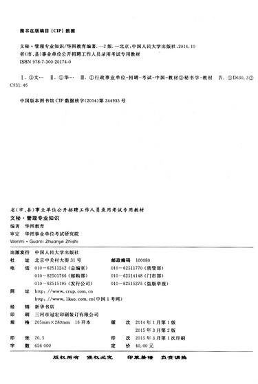 文秘管理专业知识(2015-2016省市县事业单位公开招聘工作人员录用考试专用教材)