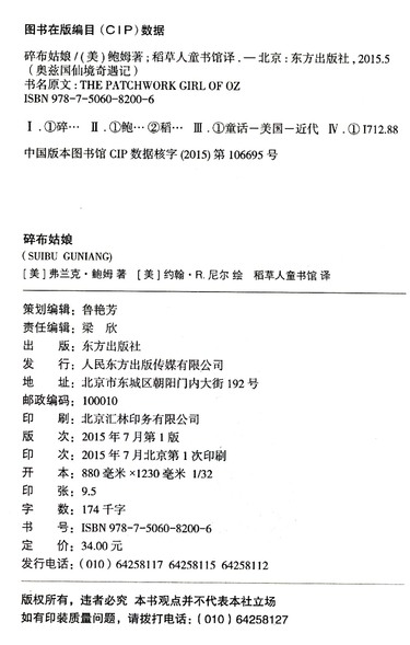 | CIP核字 | 2015106695 |