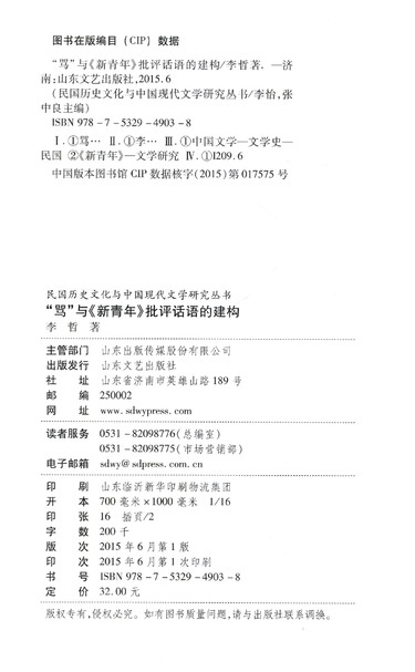 骂与新青年批评话语的建构/民国历史文化与中国现代文学研究丛书