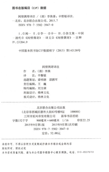 | CIP核字 | 2015143130 |