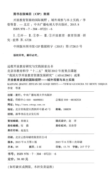 | CIP核字 | 2015172813 |