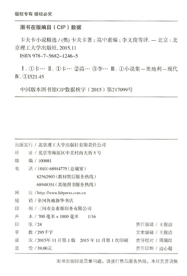 | CIP核字 | 2015217099 |