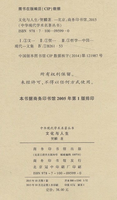 文化与人生/中华现代学术名著丛书