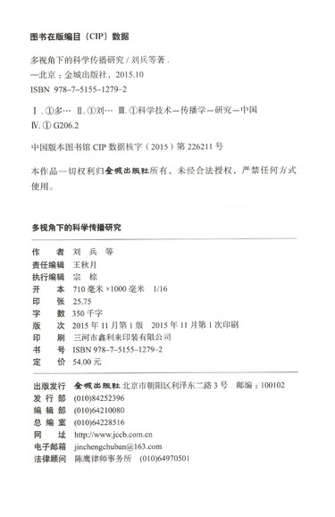 多视角下的科学传播研究/中国科协-清华大学科技传播与普及研究中心文丛