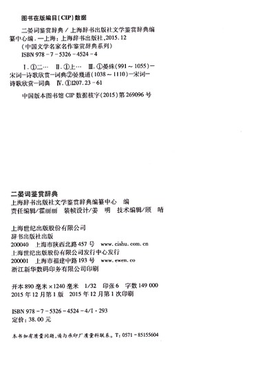 | 编者 | 上海辞书出版社文学鉴赏辞典编纂中心 |