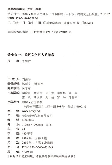 诗史合一(另解文化巨人毛泽东)