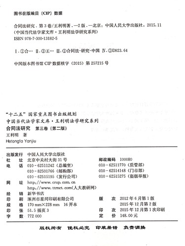 | 丛书名 | 王利明法学研究系列 |