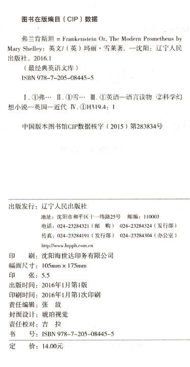 弗兰肯斯坦(英文版)/最经典英语文库