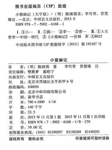 | 出版社 | 中国盲文出版社 |