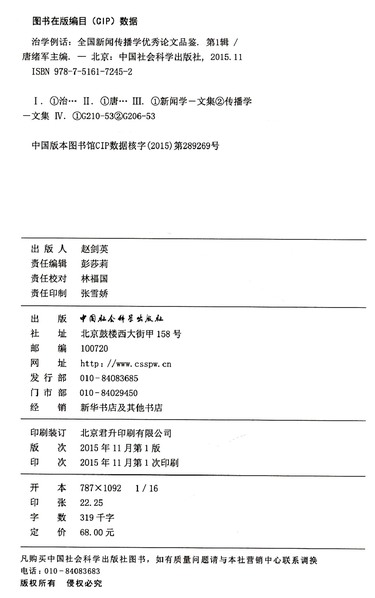| 出版社 | 中国社会科学出版社 |
