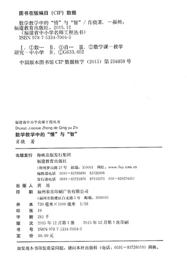 数学教学中的情与智/福建省中小学名师工程丛书