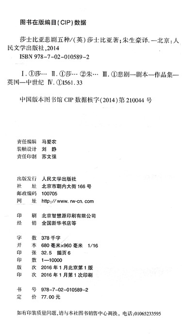 | 出版社 | 人民文学出版社 |