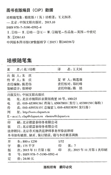 | CIP核字 | 2015248356 |