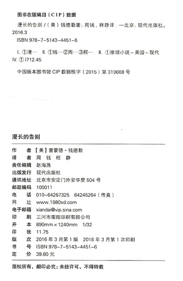 | 作者 | (美)雷蒙德·钱德勒 |