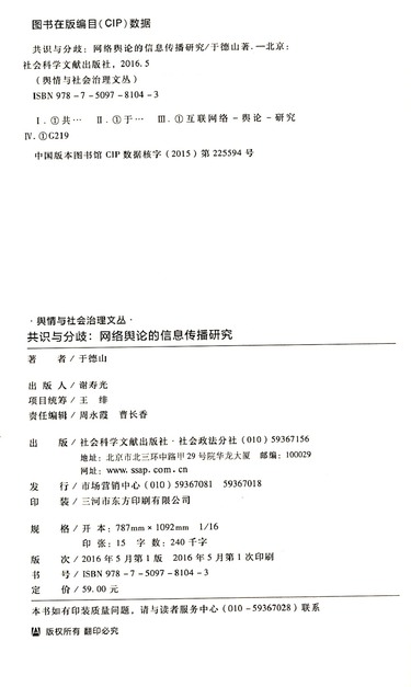 共识与分歧--网络舆论的信息传播研究/舆情与社会治理文丛