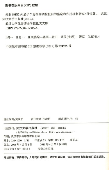 抑制SMN2外显子7剪接的调控蛋白的鉴定和作用机制研究/武汉大学优秀博士学位论文文库