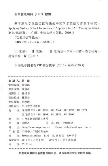 基于悉尼学派语类读写法的中国学术英语写作教学研究/功能语言学论丛