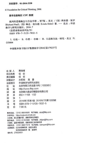 批判性思维概念与方法手册(第7版)/思想者指南系列丛书