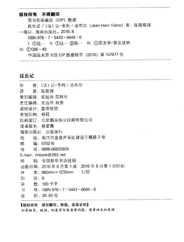 | 作者 | (法国)让-亨利·法布尔 |