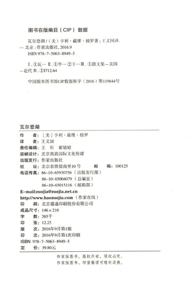 | 作者 | (美)亨利·戴维·梭罗 |