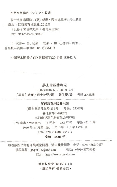 | CIP核字 | 2016193932 |