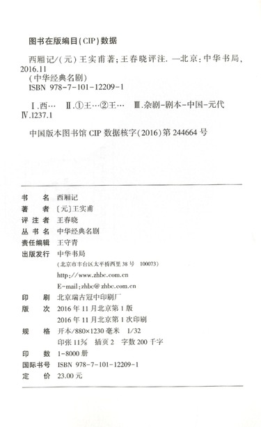 | 作者 | (元)王实甫 |