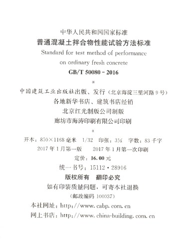 普通混凝土拌合物性能试验方法标准(GB\T50080-2016)/中华人民共和国国家标准