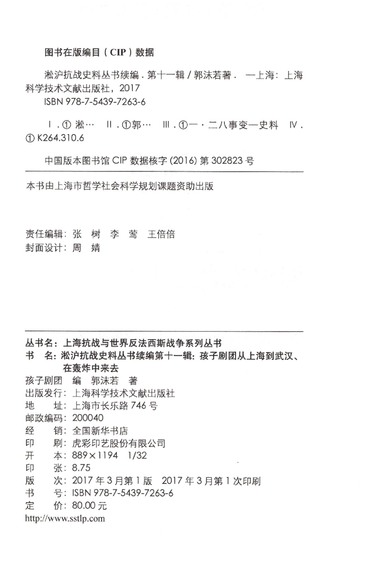 淞沪抗战史料丛书续编(Ⅰ第11辑孩子剧团从上海到武汉在轰炸中来去)(精)/上海抗战与世界反法西斯战争系列丛书