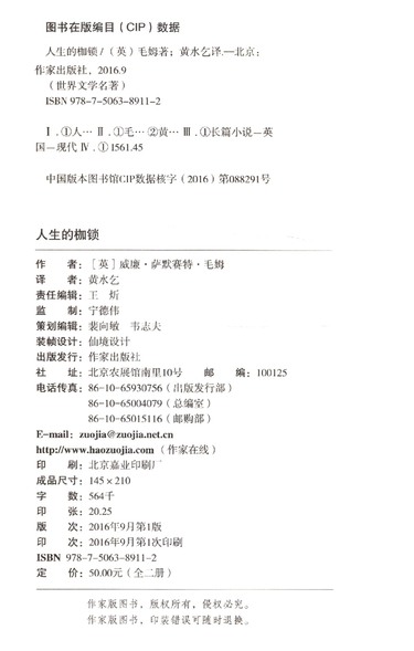 人生的枷锁(上下)/世界文学名著