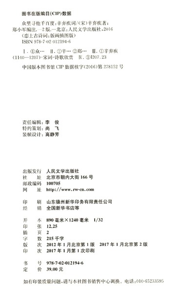 | 出版社 | 人民文学出版社 |