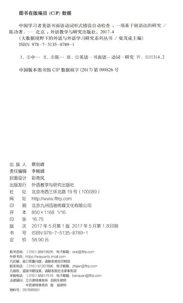 中国学习者英语书面语动词形式错误自动检查--一项基于链语法的研究/大数据视野下的外语与外语学习研究系列丛书