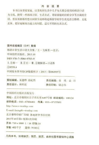 | 商品编码(ISBN) | 9787506497039 |
