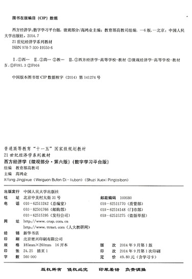 西方经济学(微观部分第6版数字学习平台版21世纪经济学系列教材普通高等教育十一五国家级规划教材)