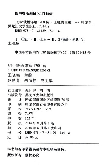 | 出版社 | 黑龙江大学出版社 |