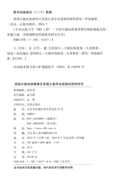 西部少数民族聚居区贫困儿童学业成就的质性研究/多维视野的民族教育研究丛书