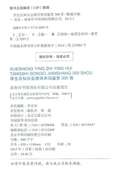 学生应知应会唐诗宋词鉴赏300首