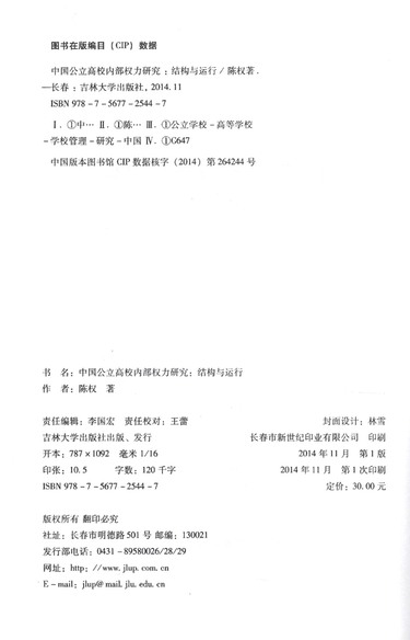 中国公立高校内部权力研究--结构与运行