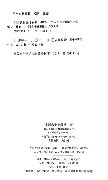 | 出版社 | 中国农业出版社 |