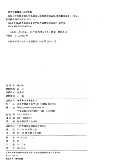 医疗卫生系统招聘历年真题及专家命题预测试卷(医疗类2015最新版)/山东省属地市级及县事业单位考试轻松通关系列
