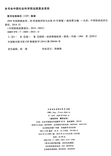1994年的财税改革--20年进程评估与未来10年展望(中国财政政策报告2014\2015)