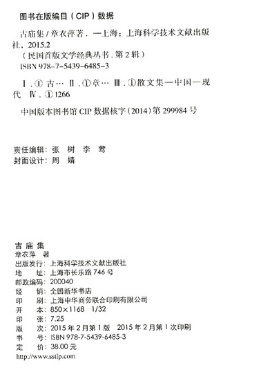 | 出版社 | 上海科学技术文献出版社 |