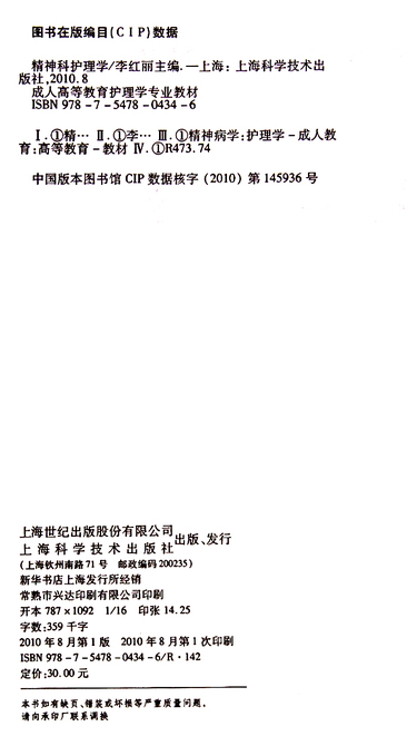 精神科护理学(成人高等教育护理学专业教材)