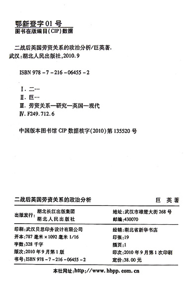 二战后英国劳资关系的政治分析/湖北经济学院学术文库