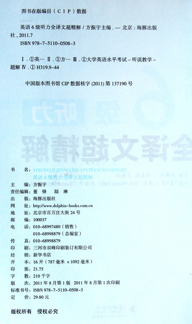 | 印刷时间 | 2011-08-01 |